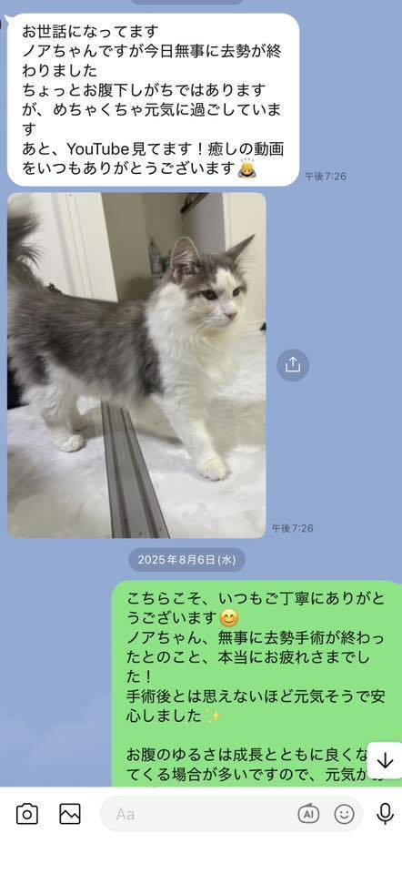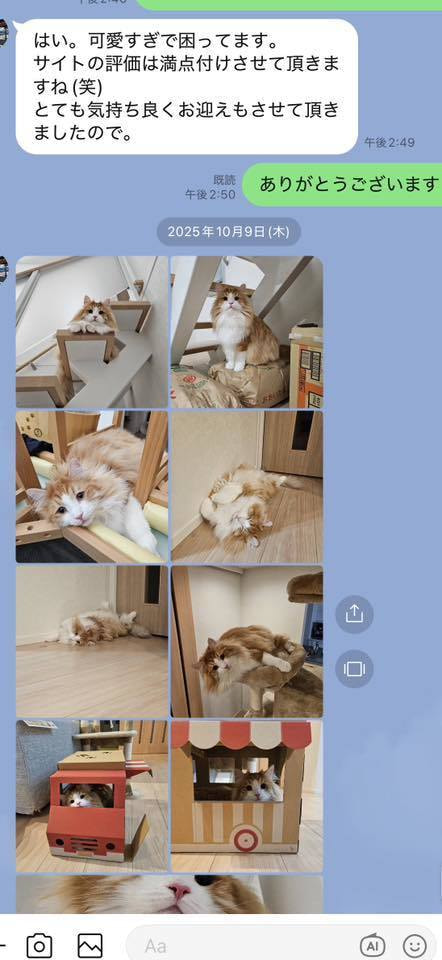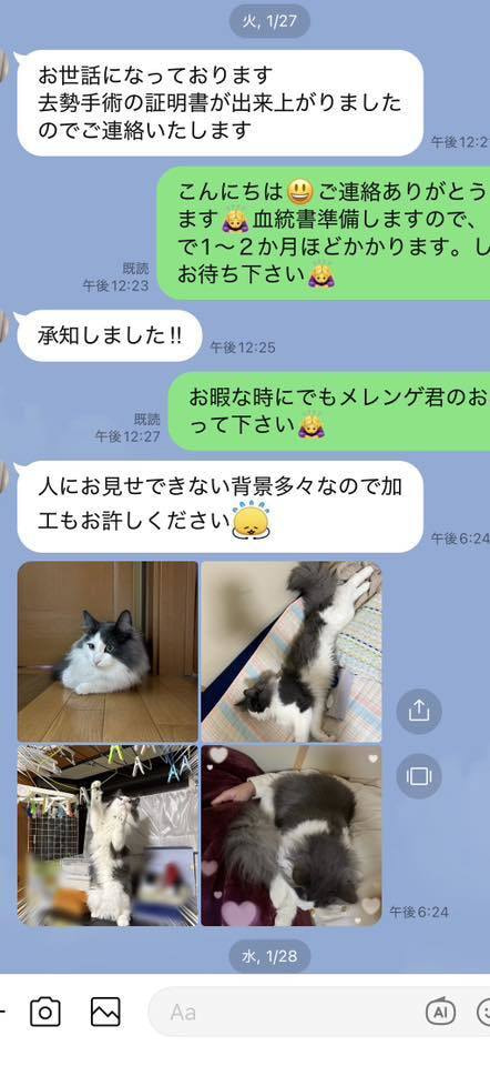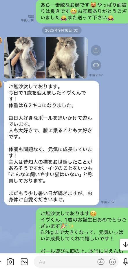 ブリーダーの仕事は、子猫をお渡しした瞬間で終わりではありません。本当の仕事は。その子が幸せな一生を送っているかどうか。こうして成長した姿をみせていただくたびに「間違っていなかった」そう思わせてもらっています。写真を送ってくださる皆さまへ。私たちは、いつも胸がいっぱいです。