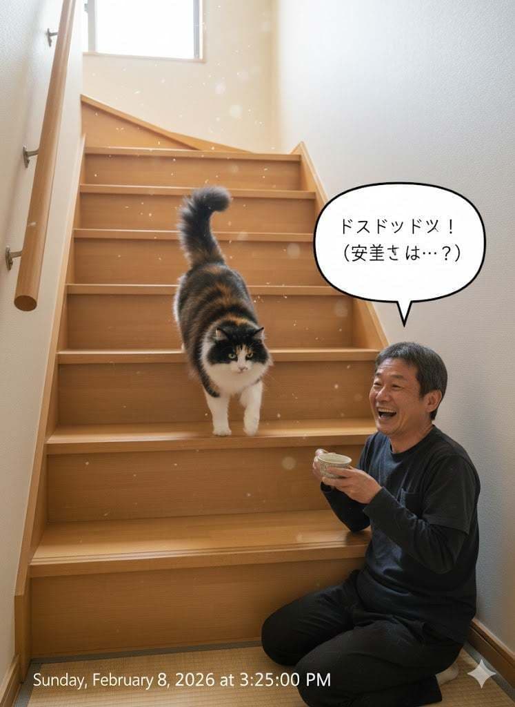 「北欧の森の妖精」と聞いてお迎えしたはずなのに、夜中に階段を駆け上がる音は「お相撲さんの稽古」です。「ドスドスドス!」という足音を聞きながら、「あぁ、今日も元気だな(妖精とは)」と微笑むようになります。